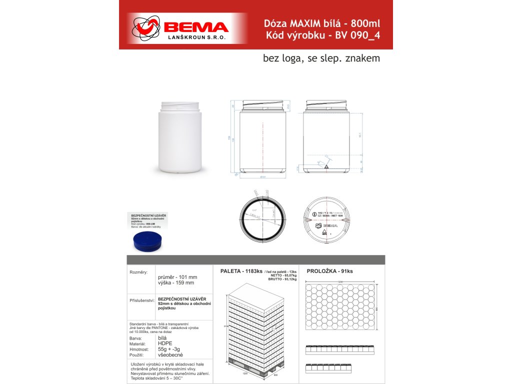 Dóza MAXIM 0,8l 55g bez loga CENA DÓZY BEZ UZÁVĚRU - uzávěry objednávejte v sekci související zboží