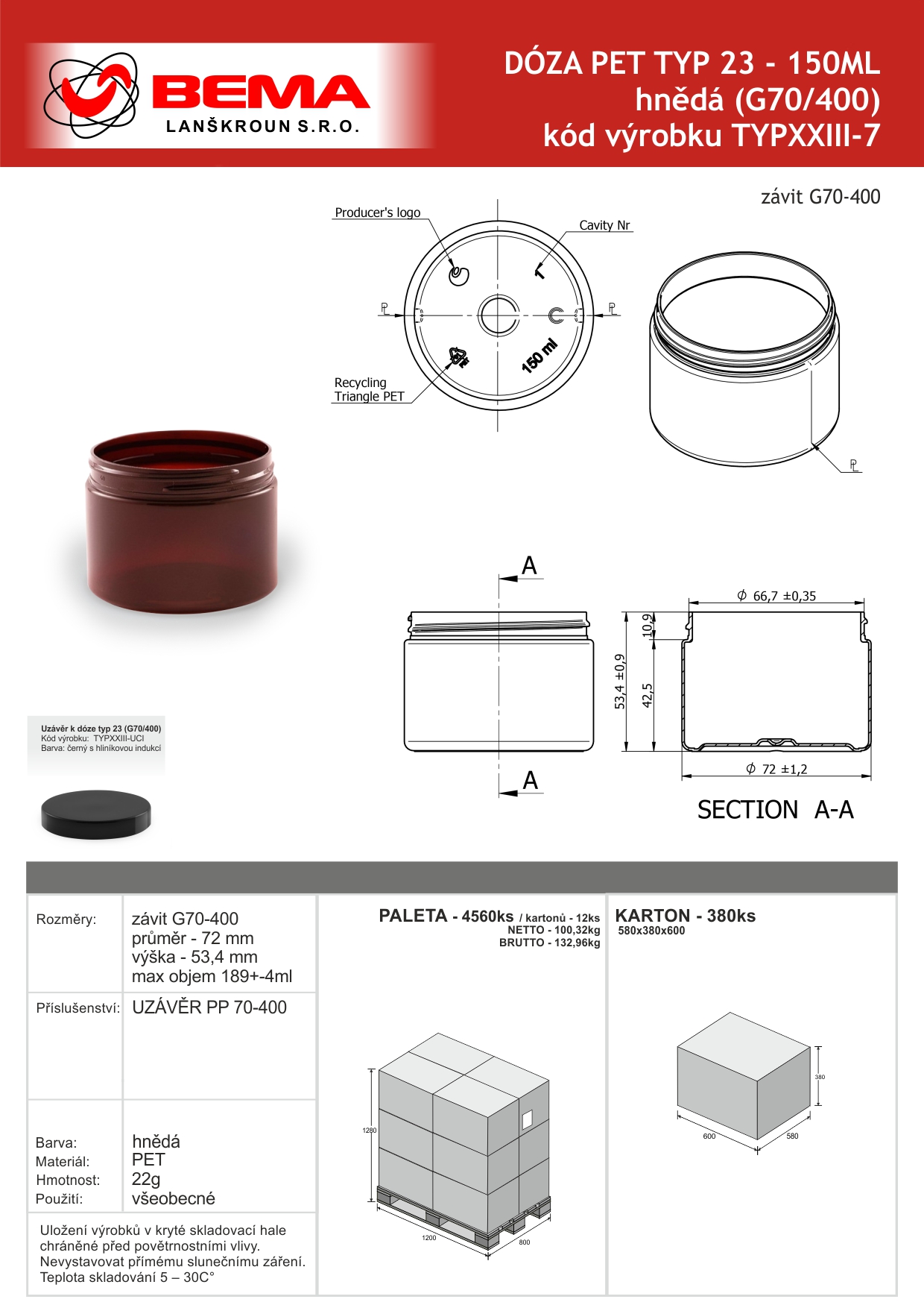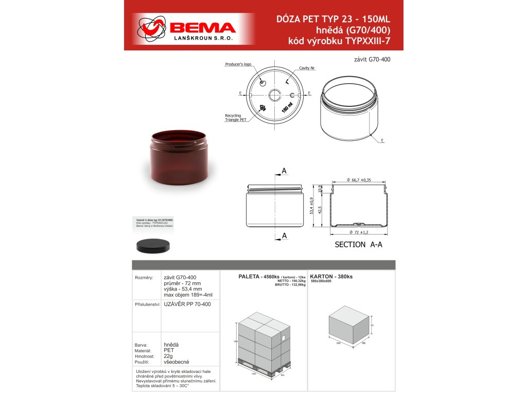 Dóza PET TYP 23 - 150ml hnědá (závit G70/400) CENA LAHVE BEZ UZÁVĚRU - uzávěry objednávejte v sekci související zboží