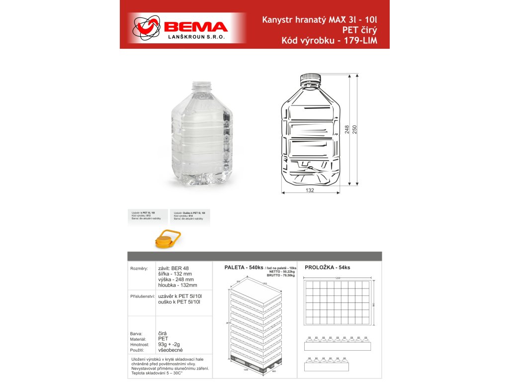 PET kanystry jsou lehčí než sklo, s uzávěrem a ouškem tvoří praktický obal a u nás je zakoupíte v objemu 3l, 5l a 10l.