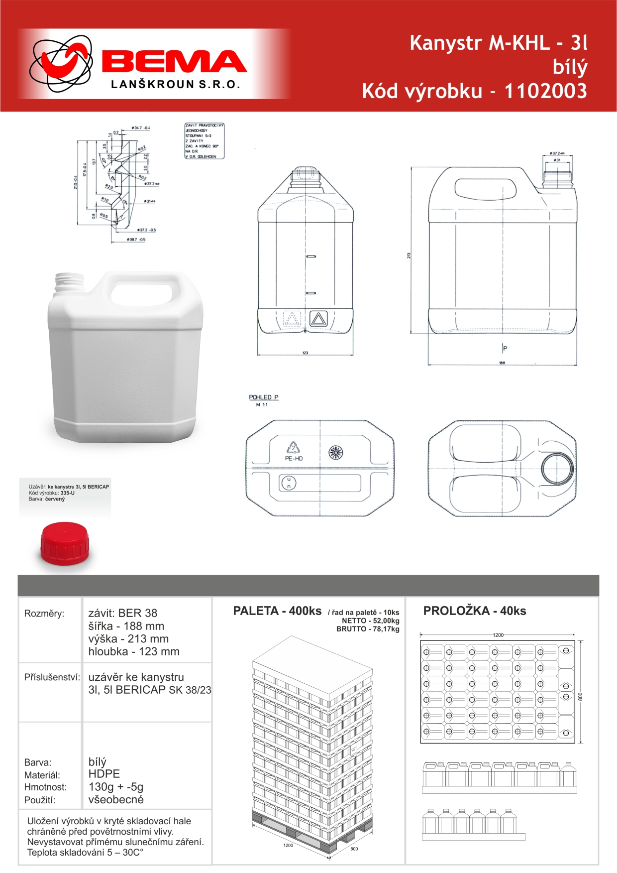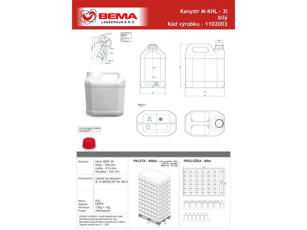 Vzhledem k navrženému tvaru je kanystr velmi stabilní a odolný.