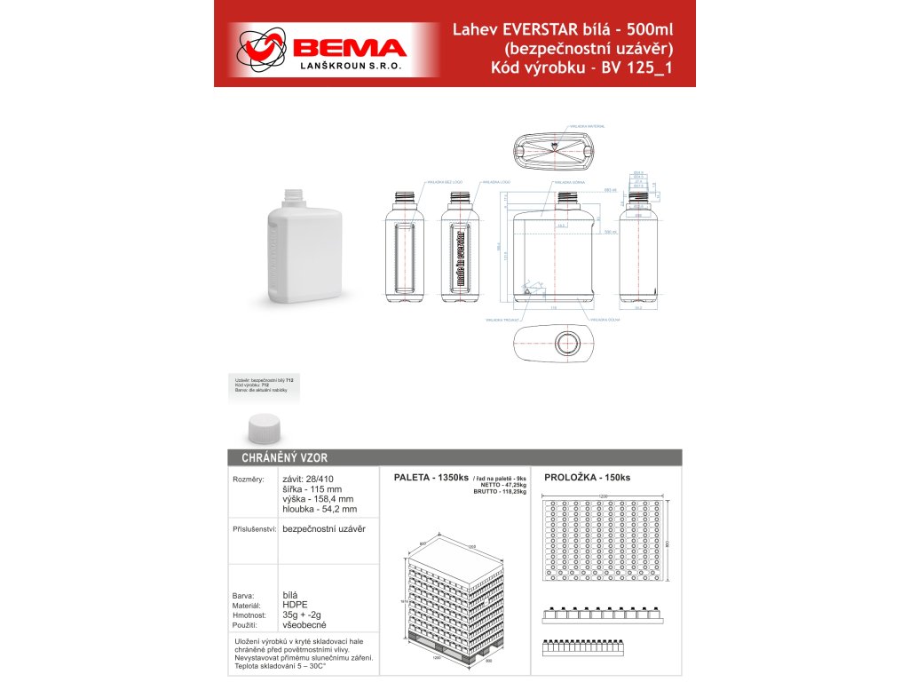 Lahev EVERSTAR 500ml bílá (bezp. uzávěr)