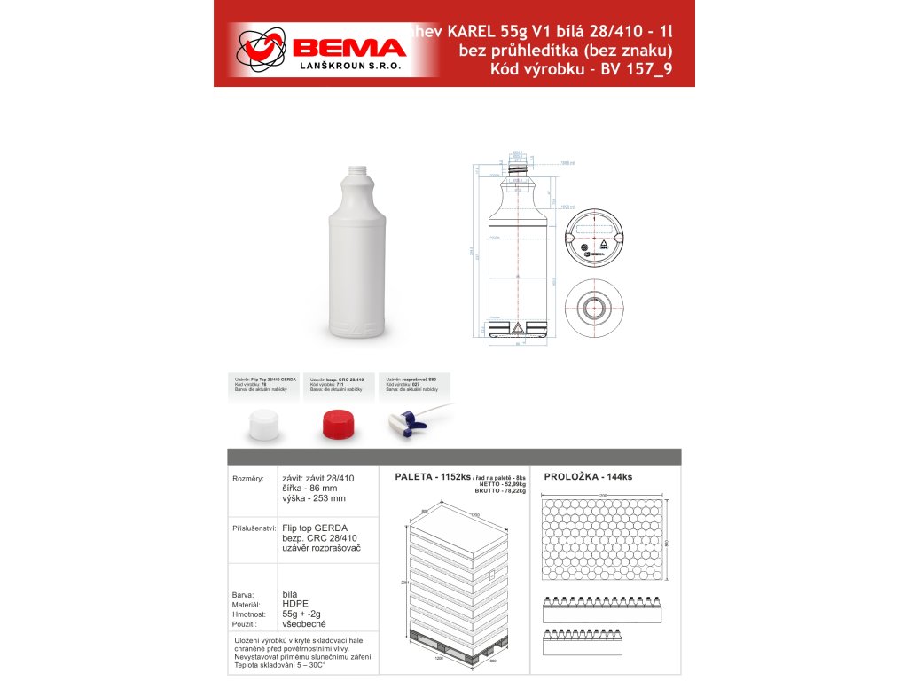 Lahev KAREL 1l 55g bílá bez průhledítka (bez znaku) / 28/410 CENA LAHVE BEZ UZÁVĚRU - uzávěry objednávejte v sekci související zboží