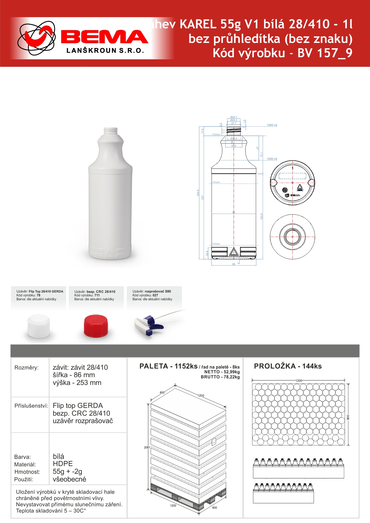 Domů/NAŠE VZORY/LAHVE HDPE A PP/Lahev KAREL 1l 55g bílá bez průhledítka (bez znaku) / 28/410 CENA LAHVE BEZ UZÁVĚRU - uzávěry objednávejte v sekci související zboží