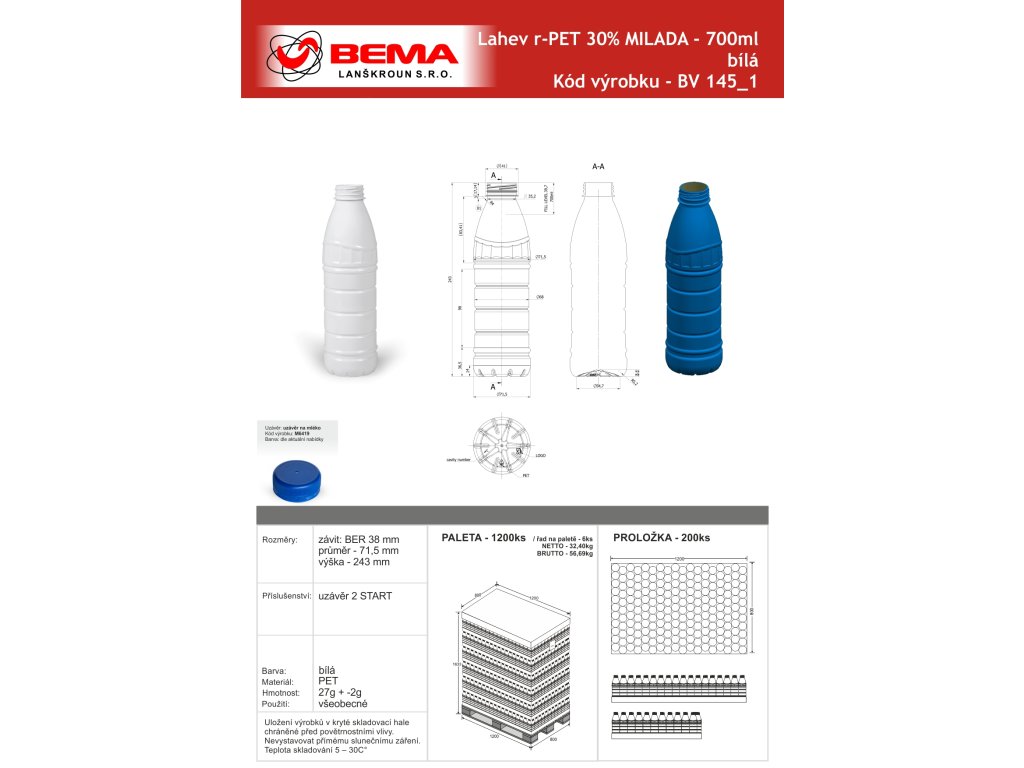 • lahve v bílé barvě zaručují odolnost obsahu vůči UV záření pro delší trvanlivost mléka, jogurtových nápojů