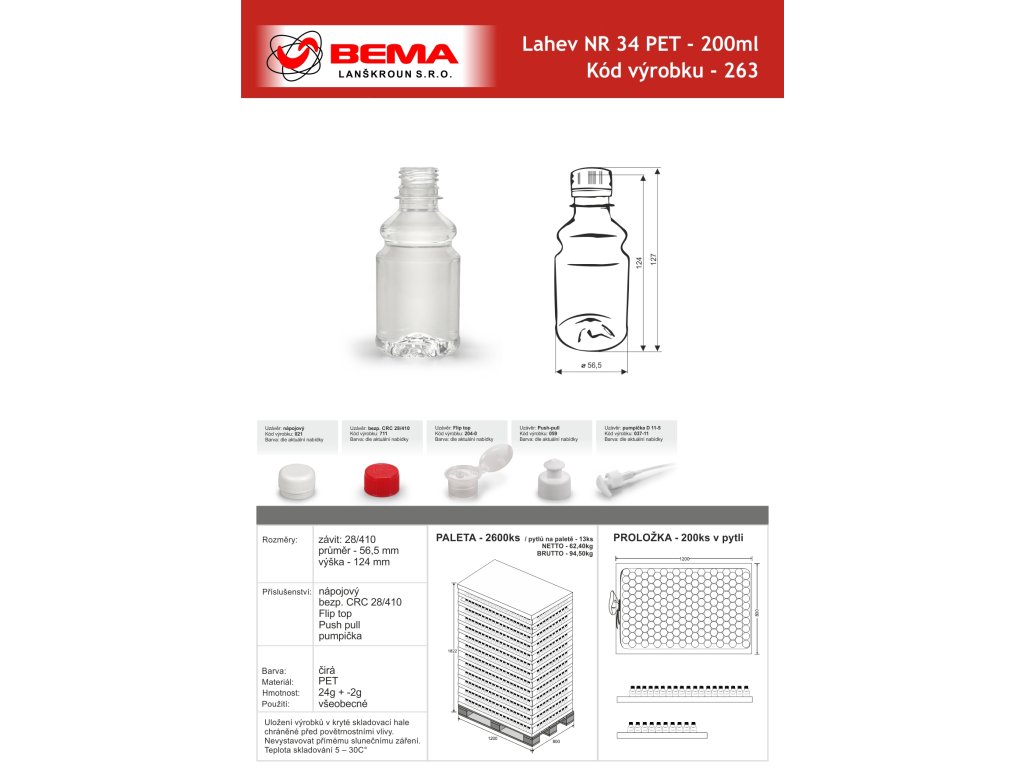 Lahev r- PET 30% NR 34 200ml čirá CENA LAHVE BEZ UZÁVĚRU - uzávěry objednávejte v sekci související zboží