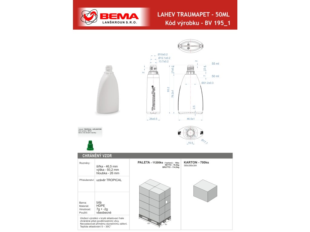 Inovativní lahvičky TRAUMAPET mají výborný design, který se skrývá v úzkém tvaru. Příjemný, úzký tvar lahve padne lépe do každé ruky. Vzhledem ke svému tvaru a ideálním rozměrům je vhodná na cesty. Nezabírá tolik místa a je perfektní i na posílání v poštovních obálkách, což byl i jeden z dalších požadavků. Měkký plastový materiál usnadňuje jemné zmáčknutí a aplikování. Lahvičku jsme navrhli s reliéfním logem TRAUMAPET, které lze tudíž poznat na pohmat.