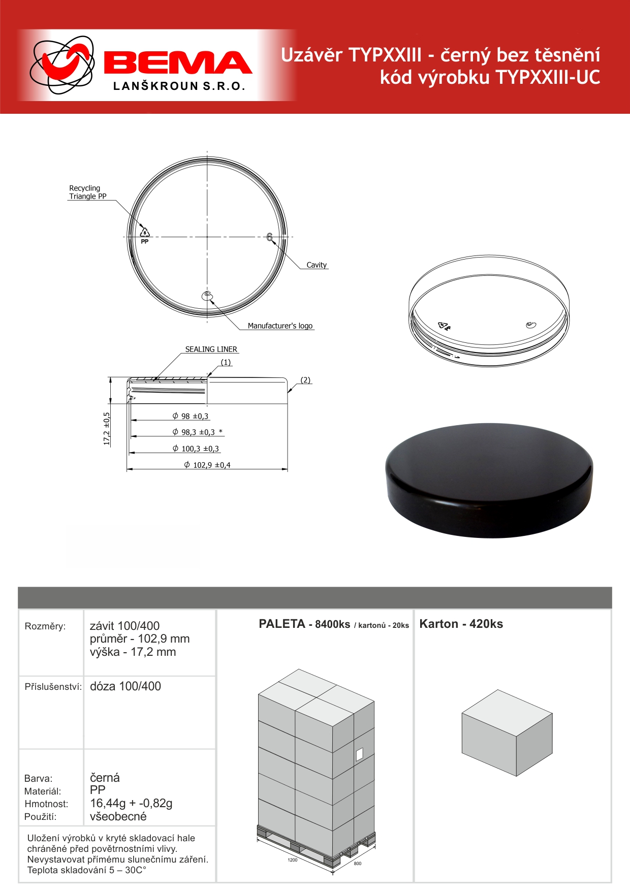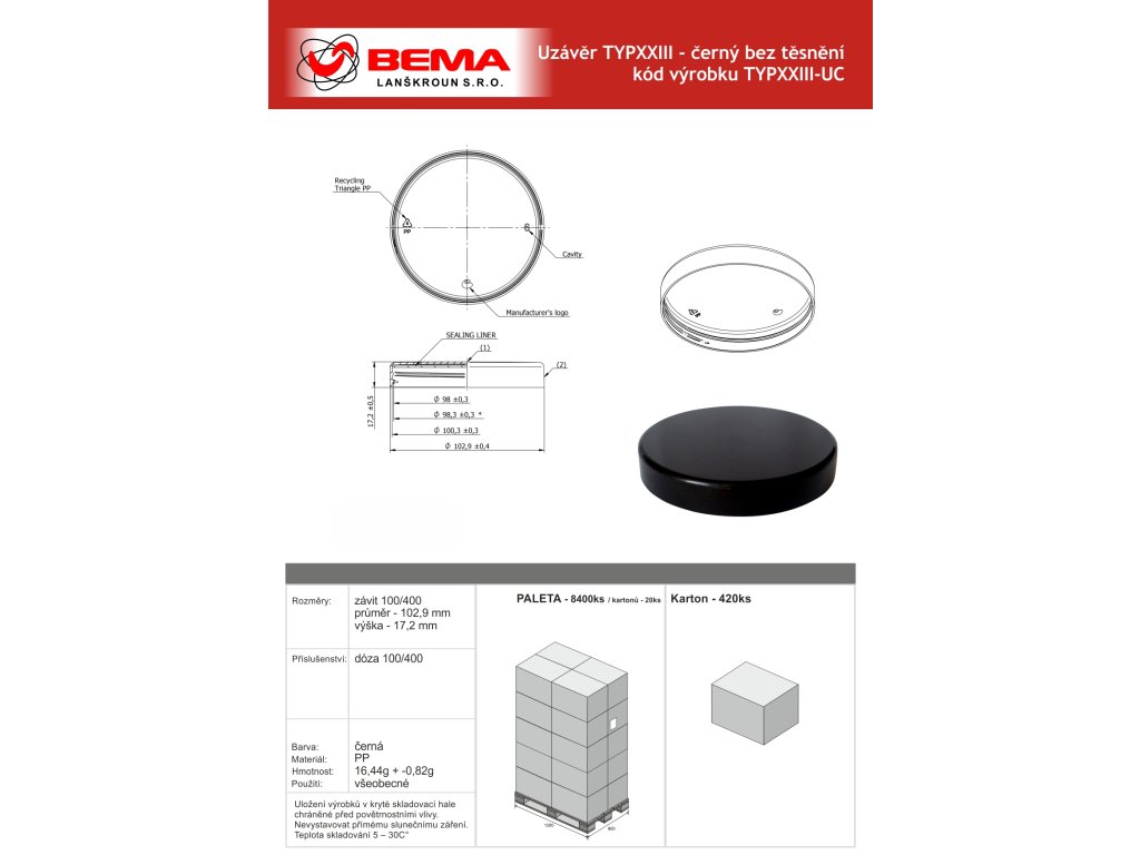 | Kategorie: | Uzávěry, membrány a těsnění na dózy |