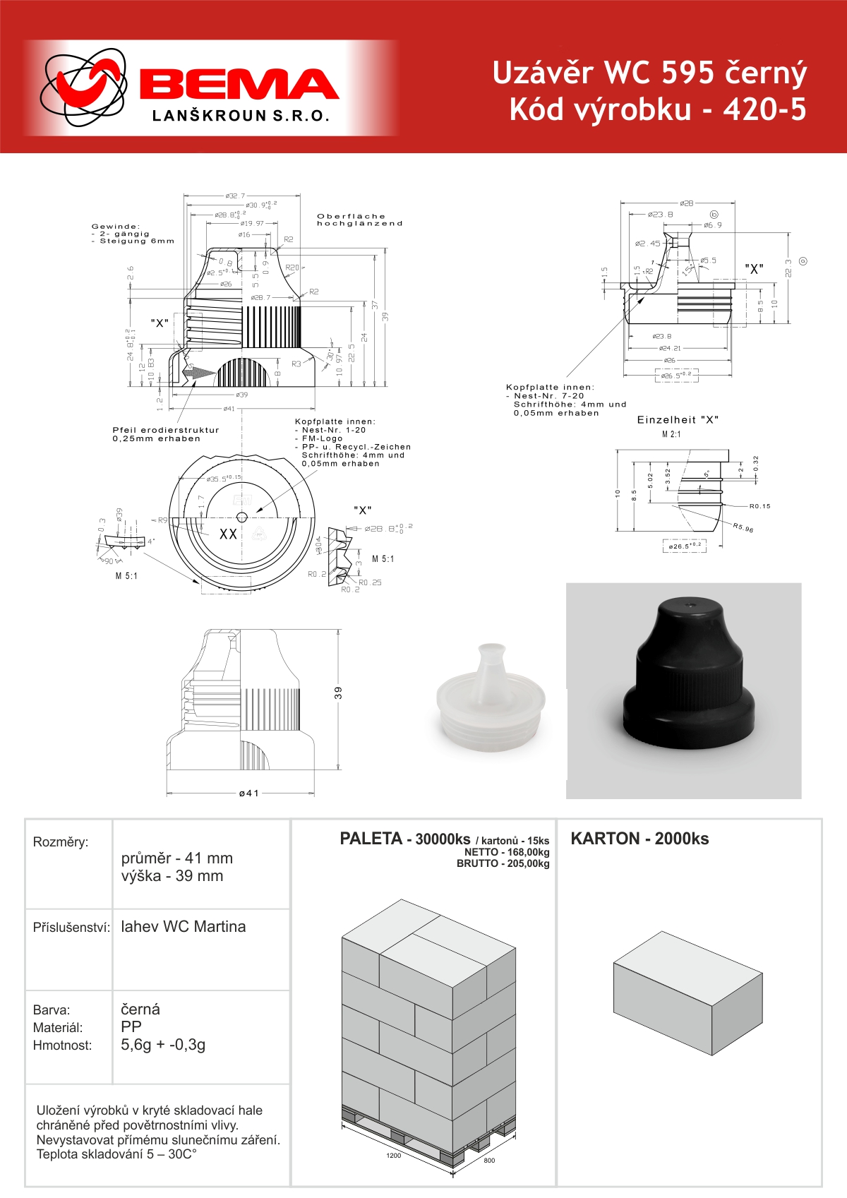 2000 ks karton / 30000 ks paleta