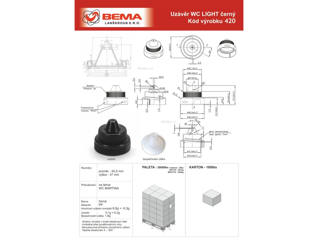 Barva uzávěru: kód 420 černý / 420-1 červený / 420-2 bílý / 420-3 modrýMateriál: PP