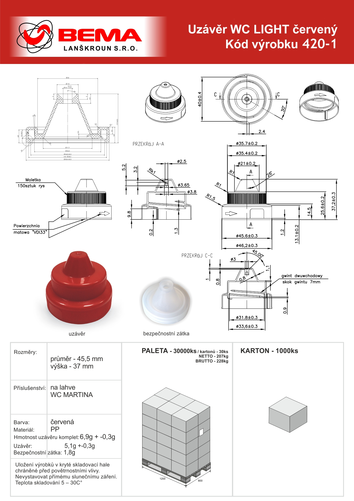 1000 ks karton / 30000 ks paleta